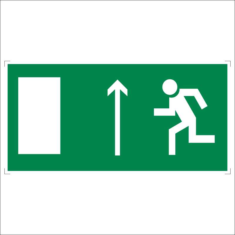«Направление к эвакуационному выходу прямо (левосторонний)» информирует о том, что направление, в котором движется человек, ведет прямо к выходу в безопасную зону. Данный знак входит в группу эвакуационных, которые обязательны к использованию в различных учреждениях, на предприятиях и в общественных зданиях. Благодаря маркировке эвакуационных выходов люди, находящиеся в здании, смогут быстро и безопасно выбраться из него при пожаре или в другой экстренной ситуации. Знак предназначен для размещения в больших по площади помещениях: над проходами, дверными проемами. Устанавливается на верхнем уровне, может быть подвешен к потолку.